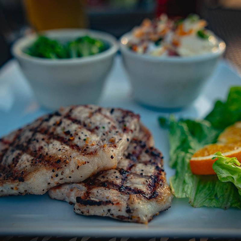We Serve Only Fresh, USDA Choice, Specially Selected, Grain-fed Angus Beef, Aged & Hand-trimmed to Our Own Specifications. Basted with Mike’s Special Au Jus during the Cooking Process for Maximum Flavor then served with your choice of two sides. Substitute One Side with a Small House or Caesar Salad on Request.